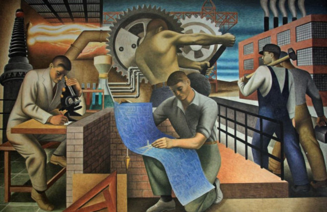 "Bustling with work and activity, 'The Wealth of the Nation' by Seymour Fogel is