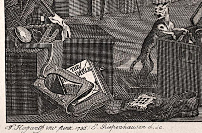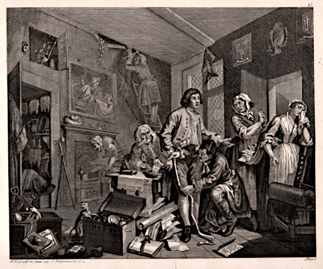 Oct. 14, 2025 William Hogarth: The Rake's Progress — The Heir Late 18th century copperplate engraving by William Hogarth. via C. Hagelstam Antiquarian Bookstore see