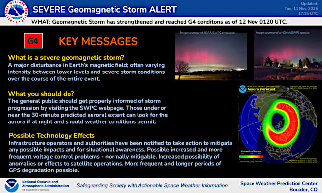 https://www.swpc.noaa.gov/news/g4-severe-storm-levels-reached Nov. 12, 2025
