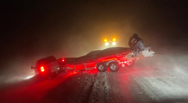 Nov. 26, 2025 "Minnesota State Patrol" "Among those off the road is this driver in west-central Minnesota, who decided a blizzard is the perfect time to start hauling a fishing boat." Adam Uren, Bring Me The News