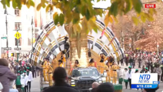 2025. | Credit: Courtney Mares/CNA / (right) Illuminated drones portray Pope