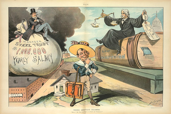 January 24, 2025 "Young America's Dilemma", Louis Dalrymple published: J. Ottmann Lith. Co., Puck Bldg., N.Y. Illus. in: Puck, v. 49, no. 1267 (1901 June 12), centerfold...