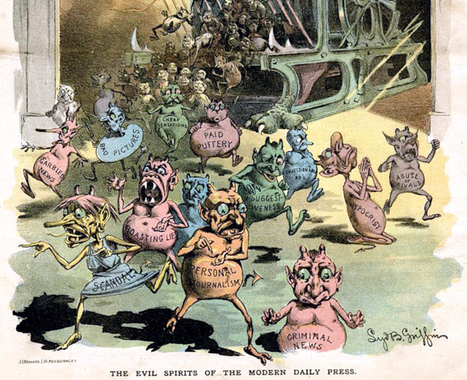 Spirits of the Modern Day Press". Puck US magazine 1888; Nasty little printer's