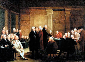 Congress voting on the United States Declaration of Independence" SEE