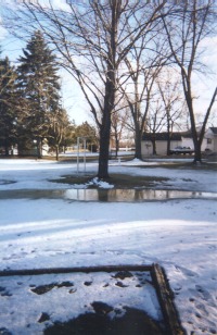 In a few months, this will be a garden and lawns. Right now, it's a look across several back yards that can't seem to decide which season they're in.